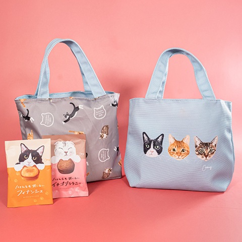 「Coony ねこねこトートバッグ&菓子セット」は、ねこ専門イラストレーターCoonyさん描き下ろしイラストを使用したトートバッグ。