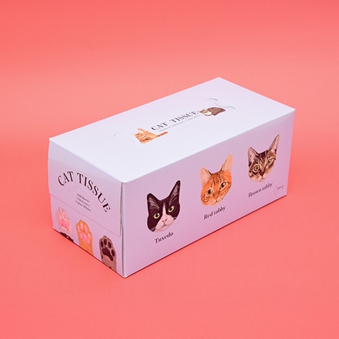 「Coony キャットティッシュ」はねこ専門イラストレーターCoonyさんのイラストが描かれたBOXティッシュ。